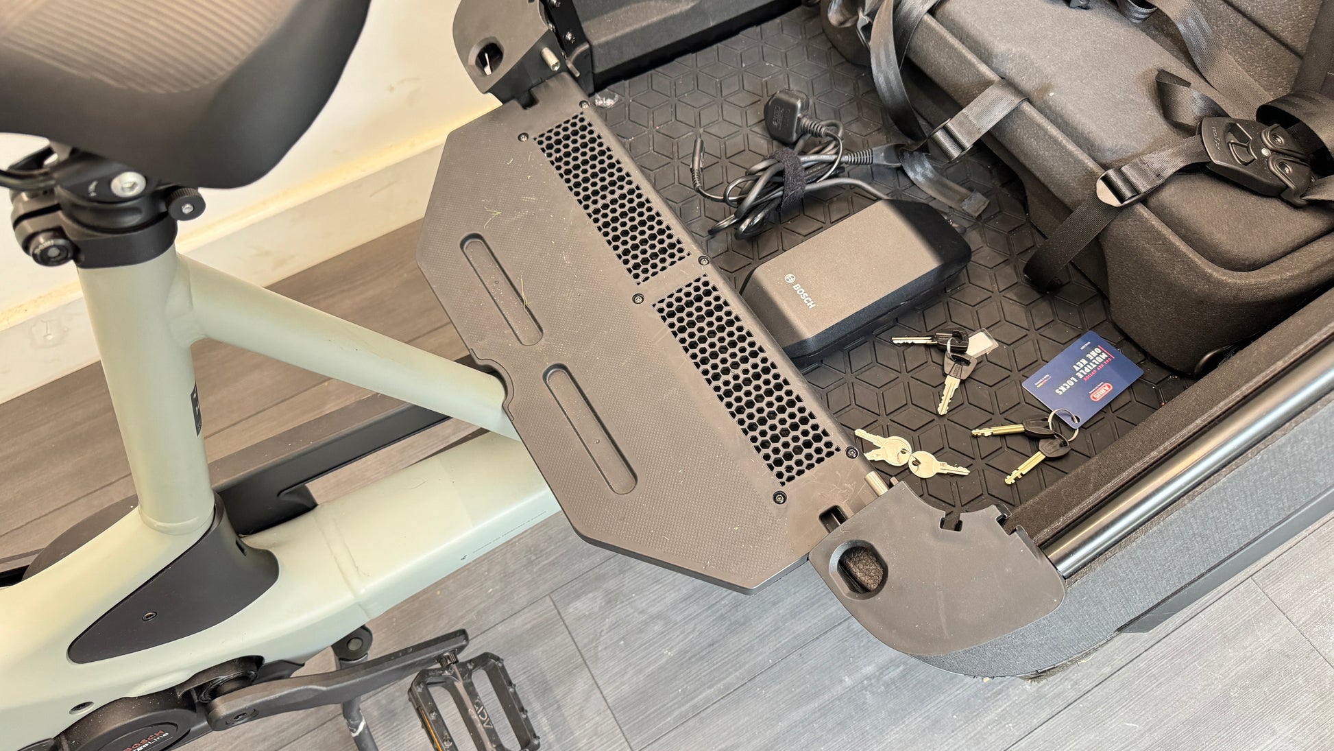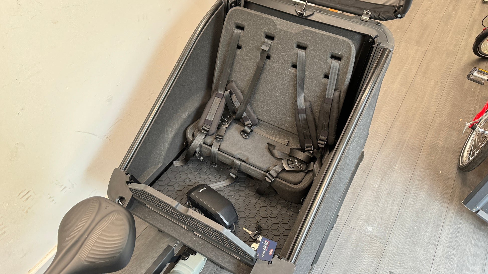 The cargo box includes two removable seats for small children, making it ideal for family transport or versatile load-carrying. This bike was purchased new for over £6000 and represents a huge saving for the next owner.