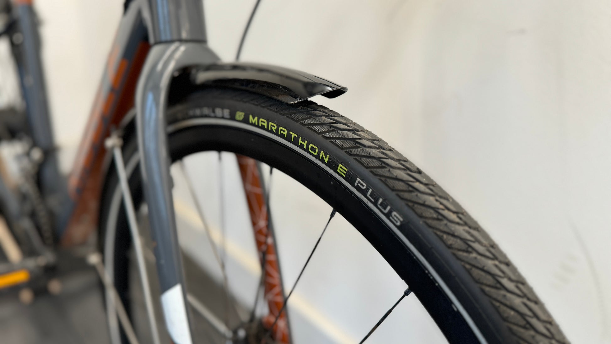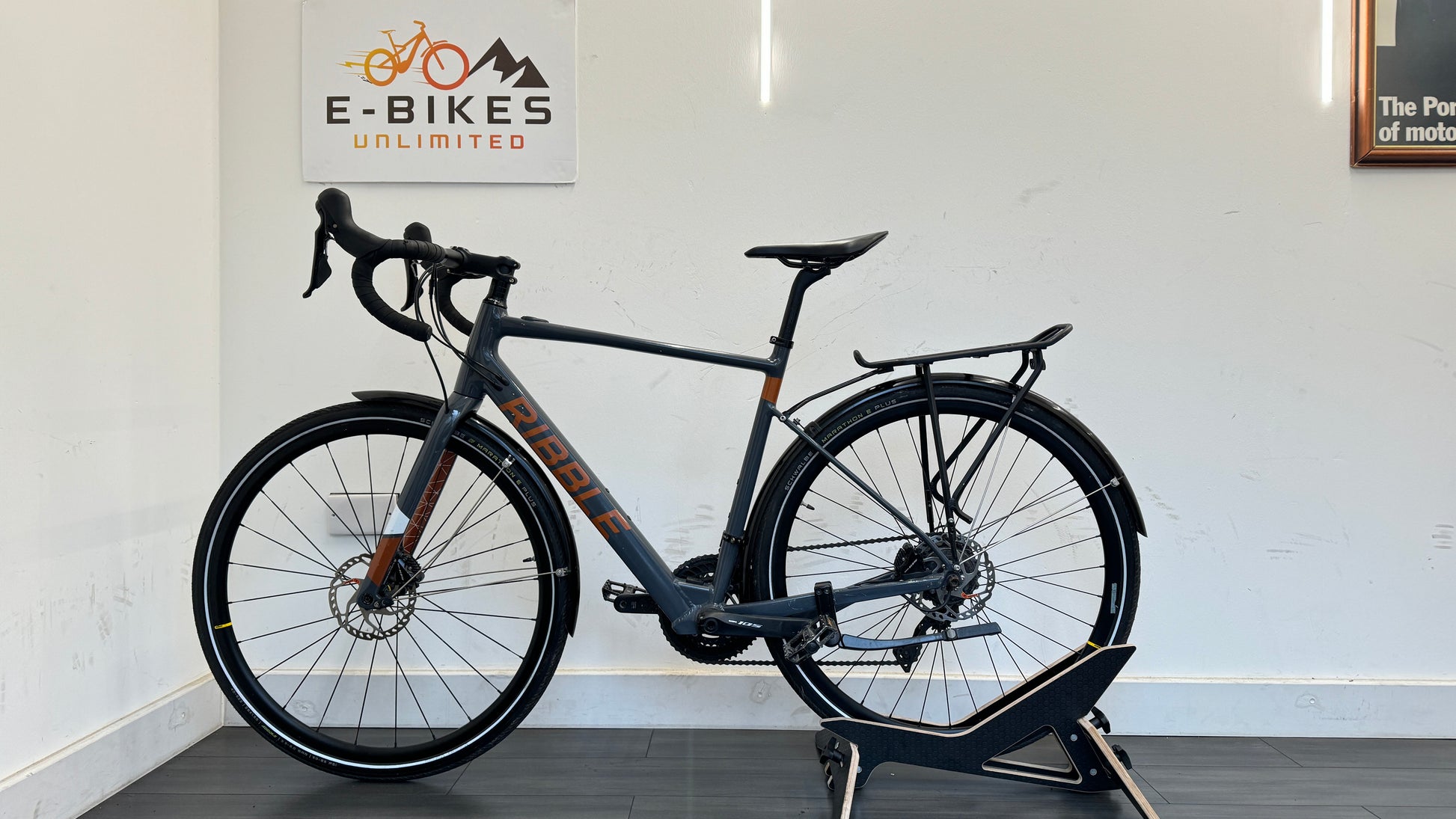 A lightly used Ribble CGR AL e Shimano 105 (Medium / 53cm) in Grey / Copper with just 1232 miles and approximately 30 charge cycles. Well maintained, sensibly specified, and fitted with a factory rear rack — a fantastic electric gravel bike ready for its next owner.